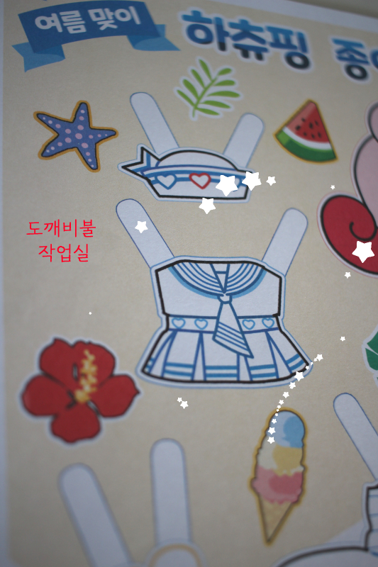 여름 느낌의 하츄핑 종이인형 만들었을 때 전체본 예시 이미지의 시험예시