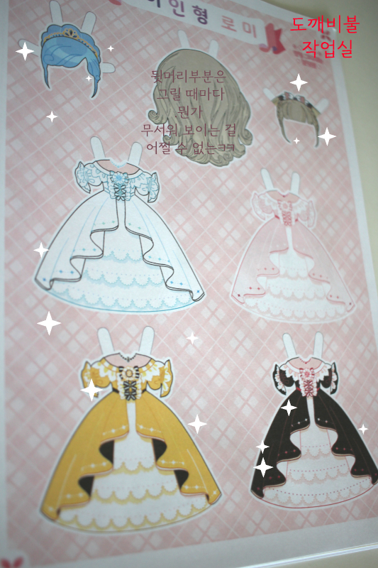 캐치티니핑 로미 종이인형 만들 때의 드레스들과 가발 일부
