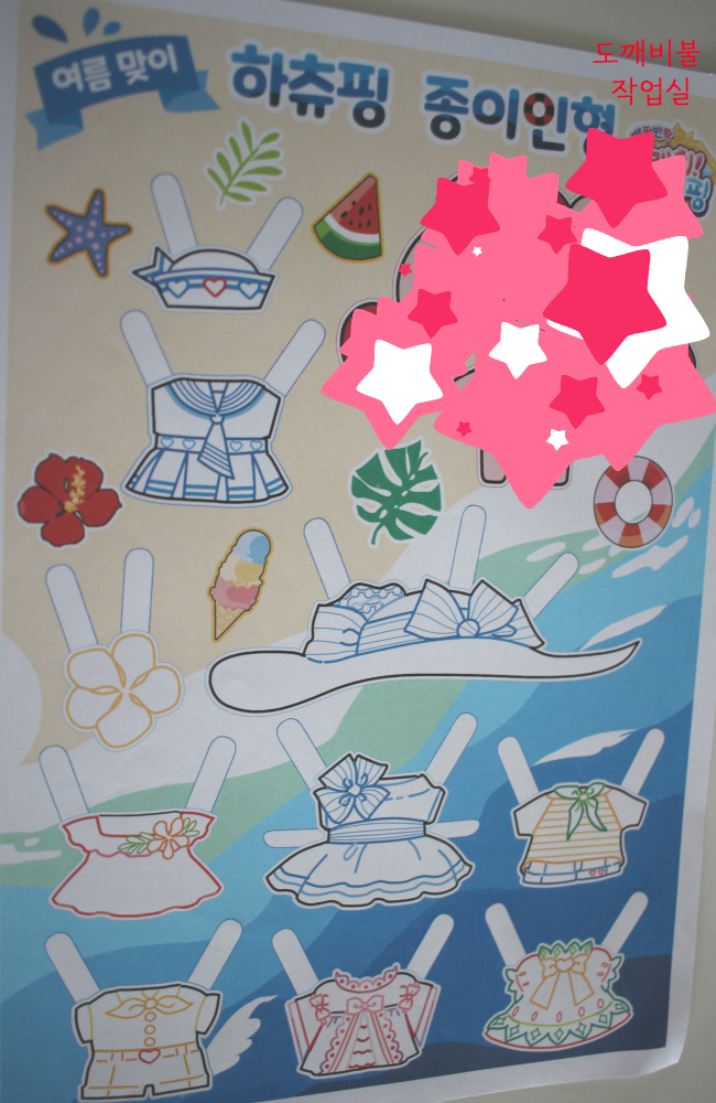 여름 느낌의 하츄핑 종이인형 만들었을 때 전체본 예시 이미지의 시험예시
